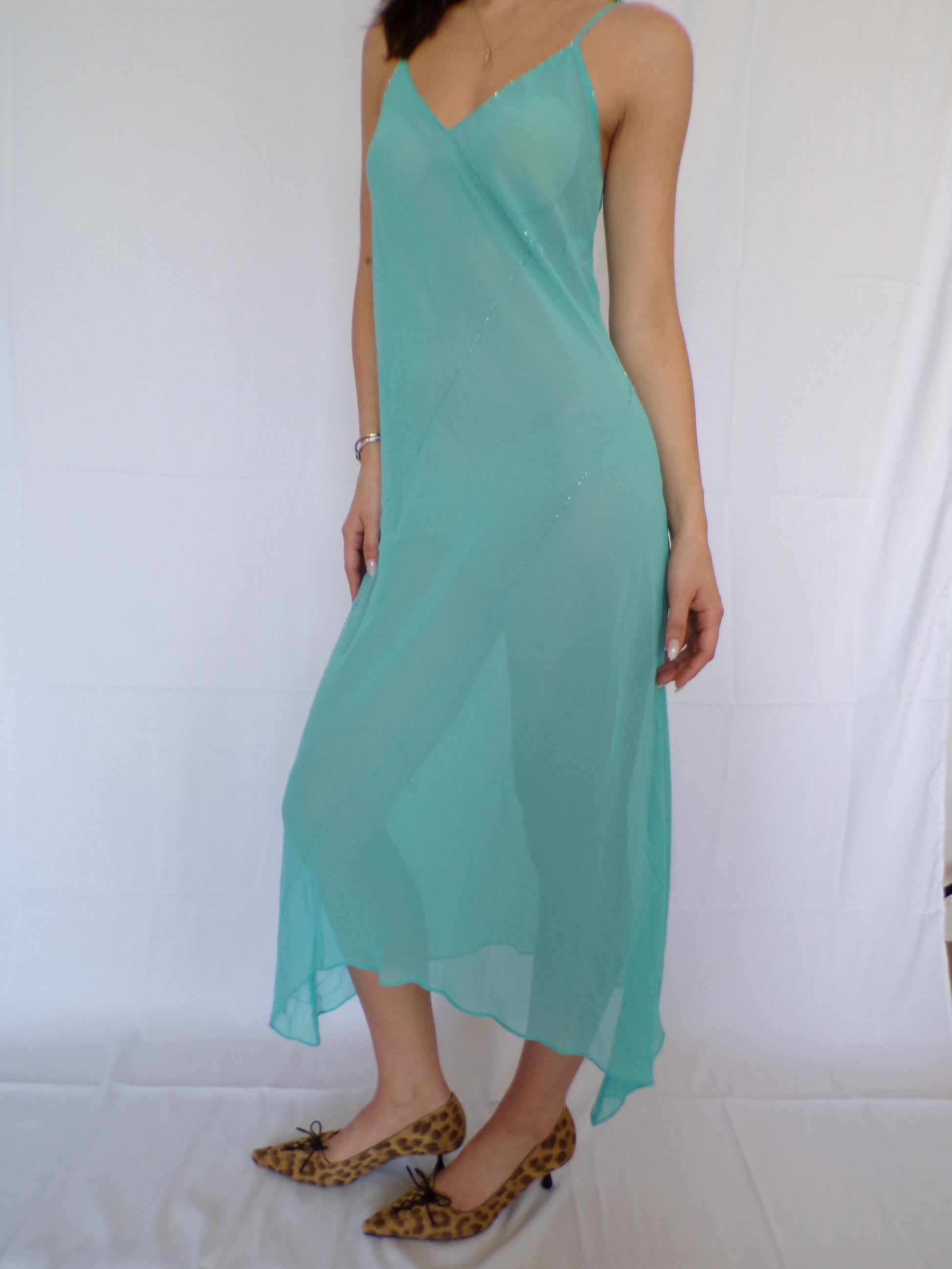 - Turquoise sheer chiffon midi dress